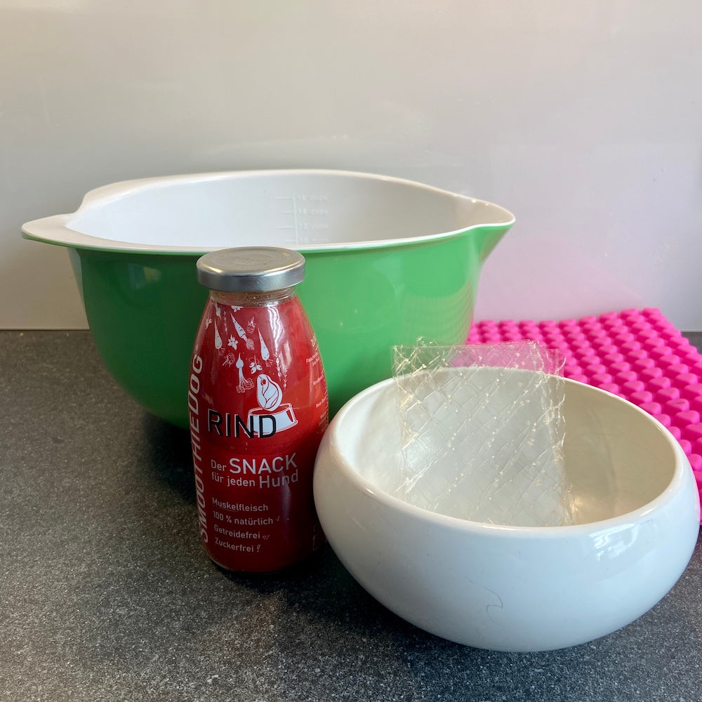 - Place a second bowl over the bowl of hot water and pour the SmoothieDog into it.